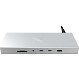 Mit dem Razer USB 4 Dock macht man eigene Regeln: Das elegante Dock besticht mit 14 Anschlüssen in einem einzigen leichten, aber robusten Gehäuse. Dank 3 USB-C-Anschlüssen, 4 USB-A-Anschlüssen, Gigabit-Ethernet, HDMI, DP, SD/microSD-Karten-Steckplätzen und einem 3,5-mm-Kombi-Anschluss ist dieses Dock die Lösung für wirklich jedes Szenario. Das USB 4 Dock besitzt einen SD-Kartenleser und kann per Gigabit LAN verbunden werden um eine stabile Netzwerkverbindung sicher zu stellen. Die vorhandenen HDMI- und DispalyPort-Ausgänge ermöglichen kreatives arbeiten in brillantem 4K (120 Hz). Der Audio-Kombi Anschluss bietet die Möglichkeit Kopfhörer sowie externe Lautsprecher-Lösungen mit modernstem 7.1 Surround Sound anzuschließen.